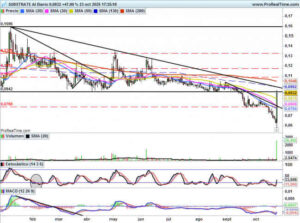 En la jornada de este jueves Substrate AI volvía a rebotar desde el soporte clave de 0,1176€ que indicamos días atrás, lo hizo además con un volumen de 2,5M de acciones, superior en un 120% a la media negociada diaria, no obstante de momento se ha quedado a las puertas de superar 0,131€ que es […]