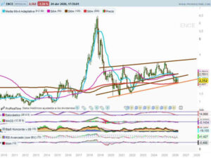 CELLNEX Velas mensuales. Valor cotizando en estructura bajista y con soporte en la zona de los 25,50€. La pérdida de estos, podría hacer que nuevamente volviera a buscar valores soportes en torno a la cota de los 23 y posteriormente los 21€. Resistencia: 35,20 y 37,60€. ENCE Velas mensuales. Respeta la zona de soporte que […]