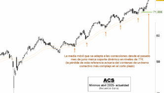 En el gráfico inferior, actualizado del último boletín técnico mensual, se aprecia la sostenida tendencia alcista de ACS desde los mínimos de 2020, con soporte principal en el paso de la directriz alcista desde entonces, … [Leer más...]