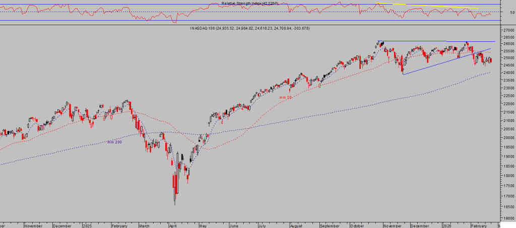… mientras que los índices los americanos merodean también sus máximos históricos (NYSE, Dow Jones SP500…) aunque mostrando síntomas de agotamiento, así como el Nasdaq que registró su último máximo el 28 de octubre y desde entonces despliega en una corrección/rango lateral.