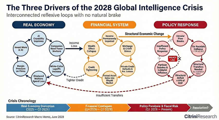 Un controvertido informe recién publicado por la firma de análisis Citrini Research, ampliamente comentado en los mercados describe un escenario en el que la implantación de la inteligencia artificial será un riesgo económico de primer orden.